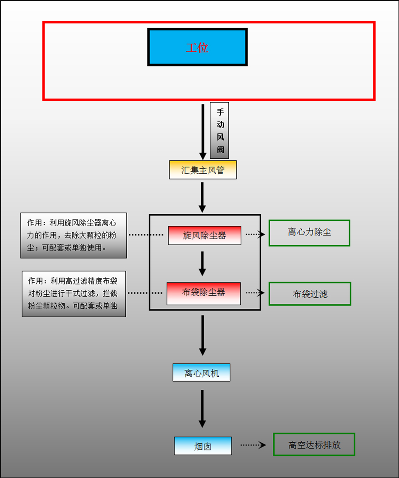 1) 解決工業未經收集的粉塵,影響加工生產環境及員工的身體健康。