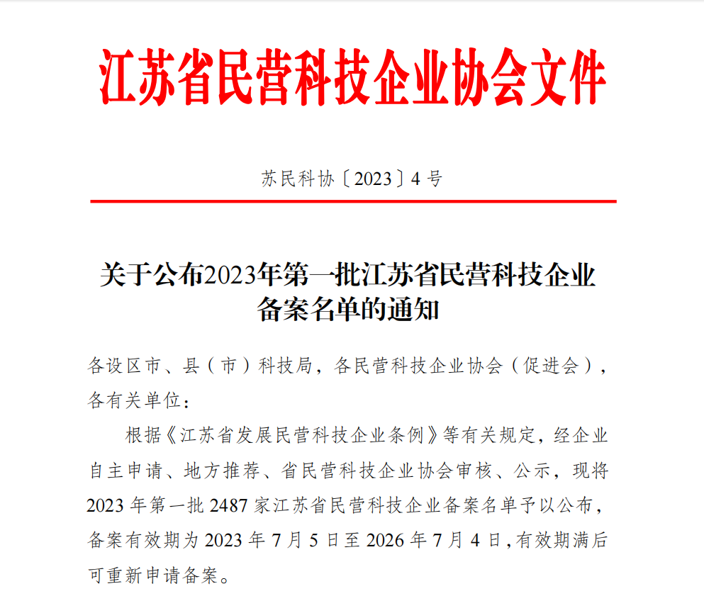 導讀:近日,江蘇省民營科技企業(yè)協(xié)會公布了2023 年第一批江蘇省民營科技企業(yè)備案名單。經(jīng)江蘇省民營科技企業(yè)協(xié)會的審查與認定,江蘇天達環(huán)保設備有限公司獲得“江蘇省民營科技企業(yè)”榮譽稱號。
