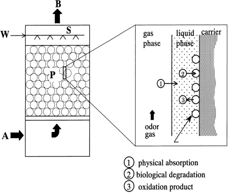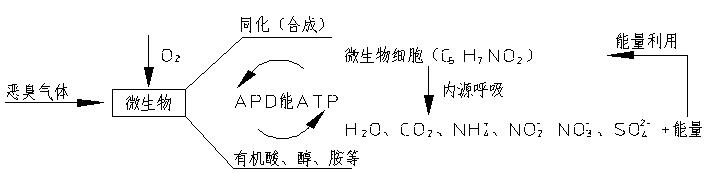 整個生物除臭過程可以用下式示意圖表示: