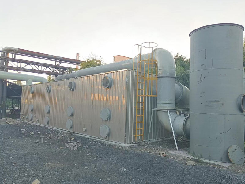 生物處理一段采用對H2S的氧化有良好催化能力的生物復合填料,在生物復合填料上生長著特別培養的細菌。余下的H2S被氧化成S、SO2或SO3,附著在生物復合填料表面上的細菌將S、SO2、SO3吸收,無二次污染。